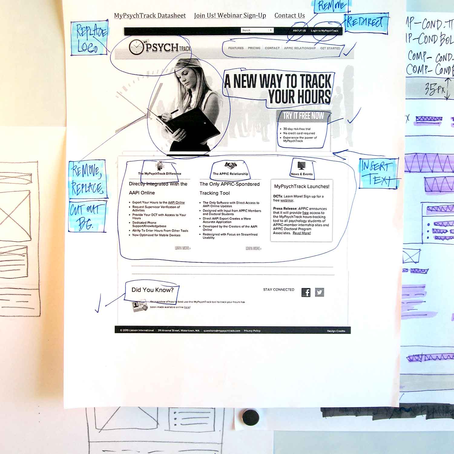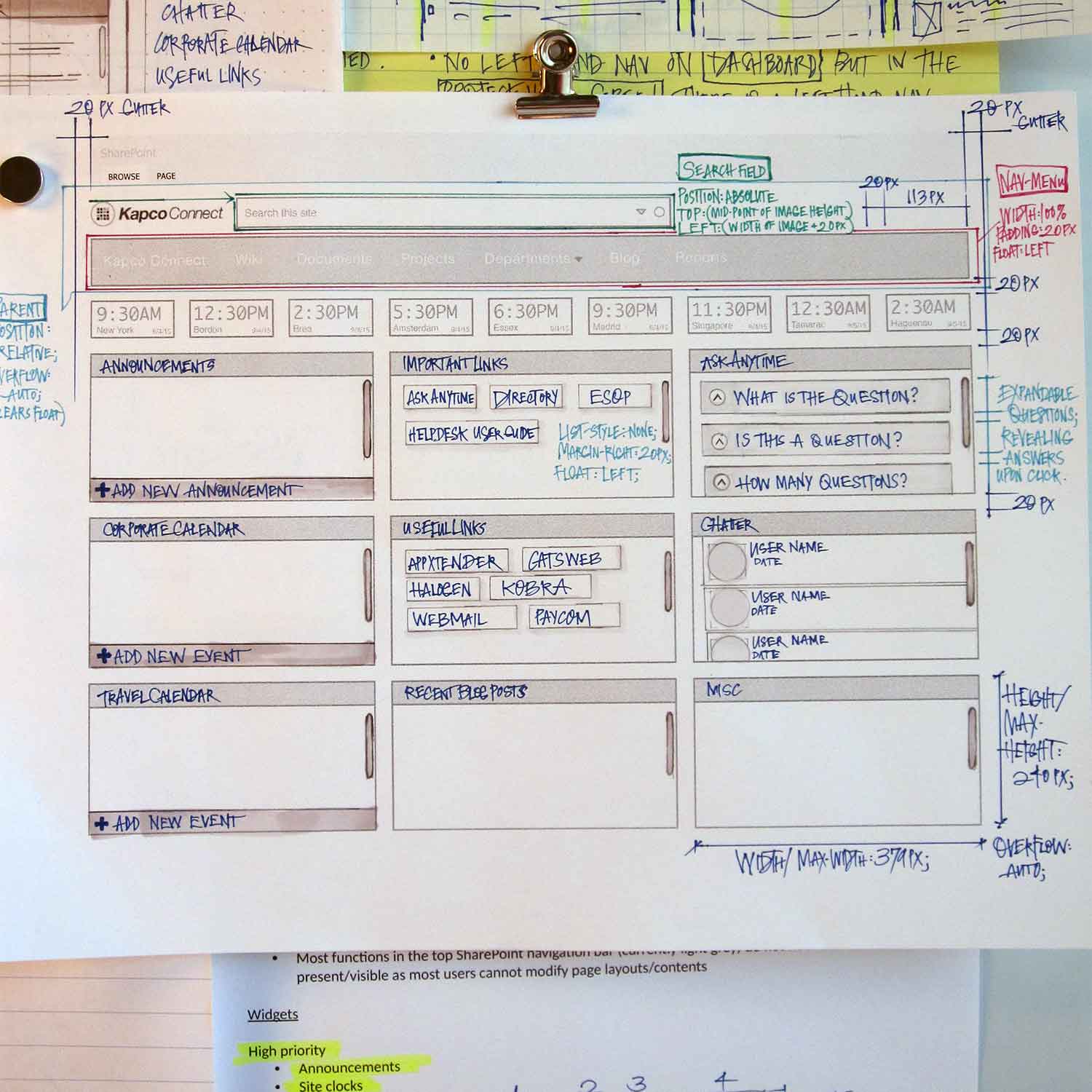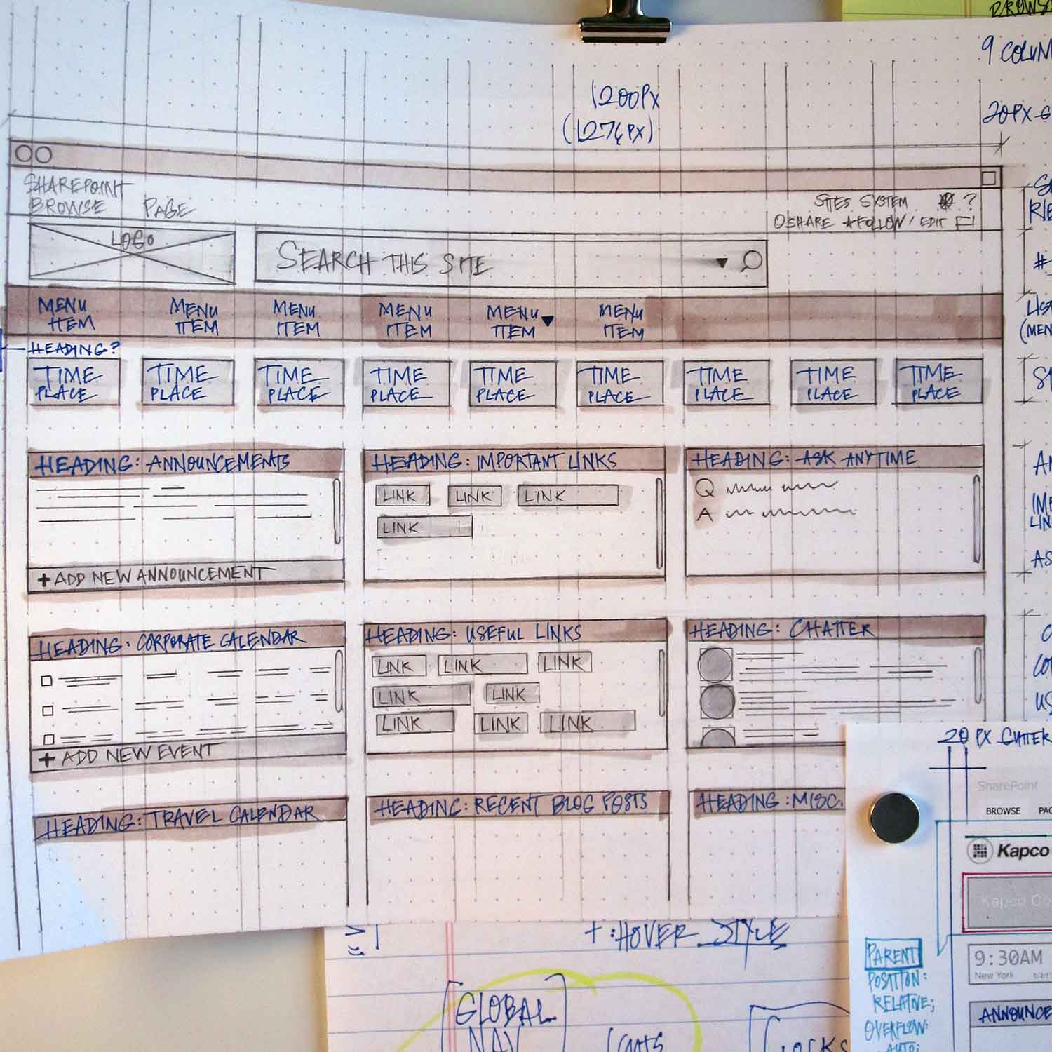 Improved the information architecture, layout, and visual design of a Sharepoint portal for employees, solving navigation issues and clarifying task choices on the dashboard. Worked closely with the developer while providing low and high-fidelity wireframes that incorporated specs on how to implement the redesign through the web development process, including optimized CSS that paired to production code.